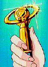 the forms a harp. She plays it and it blasts water at her enemy. This is