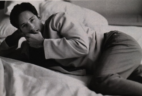 After graduating with a B.A. in English literature, he spent a year working on a "young man finding himself" novel. "It wasn't at all autobiographical," he jokes. The protagonist worked as a bartender at the Continental, which just happens to be the name of the Manhatten restaurant where Duchovny served drinks. The book went nowhere, so Duchovny headed for Yale, where he received an M.A. in English literature. It was while he was working on his Ph.D. thesis (entitled Magic and Technology in Contemporary American Fiction and Poetry) at the Ivy League institution that he was lead astray- dabbling in playwriting, hanging with the theater crowd. The acting bug bit, much to his mother's dismay, and he never earned his doctorate.