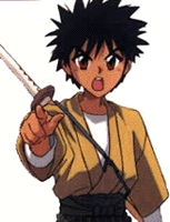 He was a cadet of the Sakihora sqaud. After the revolution, he became a professional fighter and was known as Sanza (San means cut and za is the short form of his name). Born with unusual physical strength, he was able to use the heavy giant sword with ease and defeat a strongly-built man with only one finger. His favourite food is barbercued fish and he's the expert in cooking the dish. His surname came from Souzo Sagara, the leader of the Sekihora squad. The squad is the vanguard of the reformist, later betrayed by the Meiji government. Souzo was beheaded, leaving Sanosuke behind with the hatred to the reformist and the government. The Chinese character on the back of Sano, which means ferocity, symbolises his past. He desperately wanted to beat the strongest reformist "Battosai" . It was not until Kenshin defeated him, then he realize the real meaning of the reform, and gave up his obstinacy.