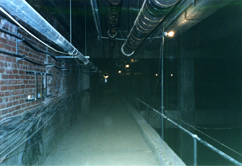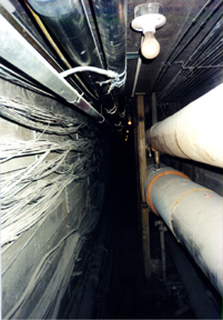 fenced supply area under the bridge, housing communications equipment.