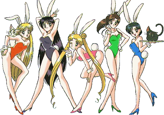 Inner Senshi and Luna and Artemis in bunny suits