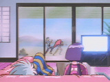 Ayeka and Ryoko watching TV while Mecha Washu is in back