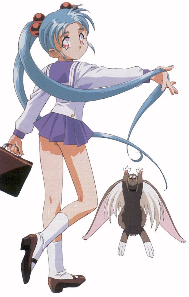 Sasami in a school uniform, with the ever cute Ryoohki