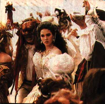 � � � Sarah wants to love but perhaps doesn't know how or, more likely, who to love at her young age. The sadness in her eyes is her loneliness, a pale and cold jewel without a setting, like a diamond that has yet to be set into a ring. She is something not yet complete. Her loneliness, however, may not always be a burden to her. The fourth line suggests the feeling of loneliness may come and go from time to time. The final line is Jareth's offering to fill the emptiness inside her, by giving her the limitless possibilities which the sky represents. His use of direct address, as though he were talking directly to her, is significant, especially because at this point in the scene, he has not yet had direct contact with her. They are only looking at one another across the ball room until Jareth turns and departs.