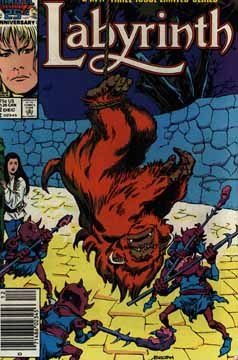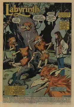 from where most of the pictures on these pages come. There is also a Storybook based on the Movie which I am trying to track down from various sources. The covers of the three books I have can be seen in Gallery 4. I've also typed up the notes from the back of the novel and I may do the same with the introduction from The Goblin Companion. However, this book is the only one of the Labyrinth books currently still in print, and I am hesitant to infringe on copyright. Caillean had some excerpts at her site "Within A Land Serene" which is currently undergoing rennovations.