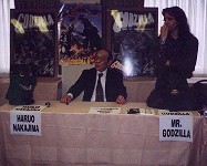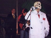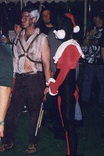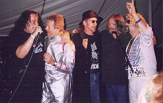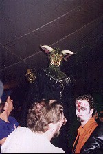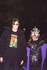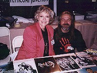 | We made our yearly trip to the Meadowlands and it wasn't to see the Giants or the Jets play football. No way, instead we found ourselves at the Sheraton Inn directly across the highway from the Stadium for the Chiller Con. Once again, Kevin Clements deserves a great big thank you for putting together another great time for fans of horror films. This year the guests included Robert Vaughn, Karen Black, Kathryn Leigh Scott, Lara Parker, Ingrid Pitt, John Kerr, Russ Streiner, Bill Hinzman, John Russo, June Lockhart, Mark Goddard, Marta Kristen and many many others. After a little discussion with Bill Hinzman at this year's monster Bash, we discovered that he really likes Lebanon's Bologna. We took some along, as well as some pretzels from Shuey's, another treat indigenous to our area and presented our gift to Bill Hinzman and Russ Streiner on Friday Night. They were more than pleased. The Costume Party was another blast with lots of terrific costumes, great bands and a surprise appearance by Joey Ramone. All in all, Sunday morning found us a bit weary as we left for Home at noon to catch the Colts/Dallas game at 4:15 at the Downtown Lounge. What was a terrific weekend was capped off by a great football game with the Colts coming out on top. Things couldn't have been any better for us. |