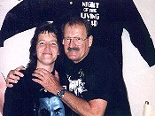 On a trip to the Monster Bash, we took a side trip to visit the Evans City Cemetery and see where the opening sequence with Barbara and Johnny were shot.  After some digging around (not literally), we found some of the tombstones used in the film.  As you enter the cemetery, the grounds keeping shed, which is featured so predominantly in the background is easy to spot on your left but the other markers were much more difficult to find.  There was a terrible storm that uprooted much of the cemetery after the film was made so it looks different than the film but the sections where much of the films opening sequence was made is still identifiable.  We took some pictures and have included them on this site. There's also a few pictures we took when we met some of the cast.  Hope you enjoy them!
