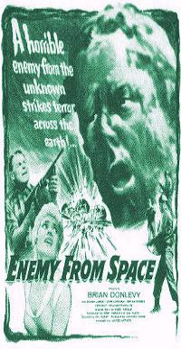 QUATERMASS 2 was previewed at a trade show on March 22, 1957 and then went into general release on June 27, 1957. Both the critics and the public received it very well and it was again renamed for U.S. distribution as ENEMY FROM SPACE. QUATERMASS 2 is very typical of science-fiction films of the time and the concept of an alien invasion that overtakes humans to gain control of the population. Films like IT CAME FROM OUTER SPACE (1953), INVADERS FROM MARS (1953), IT CONQUERED THE WORLD (1956), and I MARRIED A MONSTER FROM OUTER SPACE (1956), as well as the excellent INVASION OF THE BODY SNATCHERS (1956) all dealt with the theme of alien takeovers. QUATERMASS 2 stands along side all of them as an excellent example of transferring the paranoia of government and military power and transferring it into a science fiction setting.