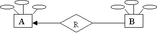 Nótese en este caso que el extremo punteado de la flecha de la relación de A y B, indica una entidad A conectada a muchas entidades B.