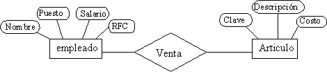 Nótese que en la tabla de relación - Venta -, contiene como atributos a las llaves primarias de las entidades que intervienen en dicha relación, en caso de que exista un atributo en las relaciones, este atributo es anexado como una fila más de la tabla;