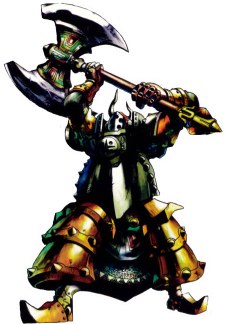 An iron warrior chosen by the King. A strong enemy who can use a shield and a sword. He exists in many forms.