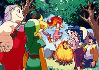 When Link awoke, he found himself in a forest he had never seen. Confused, he looked around blankly at the unfamiliar surroundings. He heard pleasant music and laughing echoing from deep within the woods. Link followed the inviting voices until he came upon a traveling troupe of actors. He was immediately struck by the beauty of a young woman who was dancing about in circles. When the girl noticed Link, she smiled brightly and called to him.