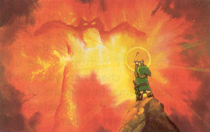 Link braved countless dangers to recover the fragments of the Triforce, which he had come to harbor a great respect for throughout his adventures. Link battled his way to Death Mountain to confront Ganon, and used the legendary Silver Arrow to pierce the King of Evil's black heart.