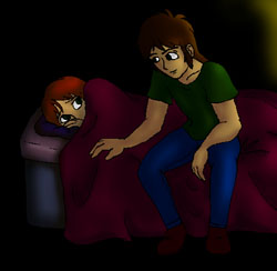 But Ryo's attention was soon captured when he noticed the principal walk in. He was accompanied by a teenage girl Ryo had never seen before. She had light skin and thin, unkept red hair sprouting from her head. Thin strands of it fell haphazardly over large, green eyes and the rest hung lifelessly down her back. She wore loose jeans, dirty grey sneakers and a purple top. A dark blue sweater was tied loosely around her hips which matched the color of the worn, blue book bag she had hanging from her shoulder.