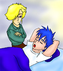 Robyn's expression turned to one of exaggerated surprise as she made a sound of complete indignance to Ryo's remark. She picked up the closest thing to her, which happened to be Rowen's pencil, and flung it at him. But unfortunately, her aim was way off and she ended up pegging the only one insisting on minding his own business-- Sage.
