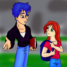 Robyn watched blankly as the two skittered energetically towards them. Out of the corner of her eye she noticed Sage grimaced outwardly as he stood and tried to leave. But the two girls swarmed in too fast and cornered him against the wide tree trunk. Before he could even get a word out, the blonde girl started talking up a storm about this and that. She was talking so fast Sage could hardly tell what she was saying, like she had anything of importance to tell him anyway.