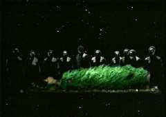 The Cigarette-Smoking Man burned the train car Mulder was trapped in. Everyone believed Mulder to be dead - except for Scully. She was on mandatory leave until the matter of her insubordination was cleared out. Meanwhile, she enlisted Skinner's help in clearing Mulder's name from murdering his father, which Skinner refused. Back in New Mexico, where Mulder had officially "disappeared", Albert Hosteen and his tribe discovered Mulder's seriously injuried body, and engaged him in a ritual called The Blessing Way in order to save his life. Back in Washington, Scully discovered that she had a computer chip planted in the back of her neck, and underwent a repression hypnosis with her sister's insistance. During the hypnosis, she saw repressed lights, alarms and men around her - memories believed to have originated from her 3-month-long abduction period. Then, Scully attended Bill Mulder's funeral, and the Well-Manicured Man warned Scully of assasins coming after her. Pumped with paranoia, Scully ran into Skinner, who was waiting for her outside her apartment. They went to Mulder's apartment to talk, while Scully suspected Skinner might be the assassin, and the two held each other at gun point when someone approached the front door......