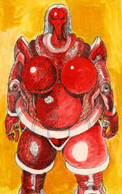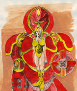"Shanine," he said. "So how do you fly an F-14?" The two Graces sat in the underground bunker sipping coffee as their sisters milled around stripping down their weapons and oiling the mechanisms. "Okay, you've got your artificial horizon and your joystick and you try and keep yourself on the level." "You don't know do you?" Sixty eight laughed. "I do too." Sixteen was getting irate. "You keep yourself on the level? What about landing?" Sixteen shot her a hard stare. "You lower your landing gear and adjust your flaps, watch your altimeter and bring the stick forward. Any more questions?" "Okay, that's enough. Watching Top Gun and tackling that thing is two different things. Tom Cruise will not turn up in a display of homo erotic bravado and whop the Circle of Chaos." Grace One adjusted her microphone so the rest of her creations could hear her. "Now when the COC comes for us it will arrive in force and come in ways we won't expect." "Such as?" 78 was one of the backward clones. She meant well and was inquisitive but her 'street' was dimly lit. "We don't know. Recon says the Iris is absorbing huge levels of raw material. There's a lot of building going on in there so we have to assume the COC is building some sort of weapon." "Like a gun?" "Maybe. Details are still sketchy. We believe a transport vehicle and several droids are being constructed. Apart from that my guess is as good as yours." "Don't like the sound of that." "Look. You ever hotwired a car?" Grace 68 shook her head. "Those things must be using some sort of familiar ignition. There's a lot of COC juice pumping in those babies but I bet you could hotwire any of those droids.� "I did see some movie about a car thief once." "There you go." "I fell asleep half way though." Sixteen sighed. "But did you see him hotwire a car?" "Uh huh." "There you go then." Sixty Eight tried to remember what the car thief had done but all she could come up with was him smashing the steering column and joining two wires together. Maybe One was right. Her sister did watch too many movies. The Murphy thing's eyes grew wide as he saw the sheets of red metal appear at the window, but realised when it started to fold itself around him that this was always meant to happen. He had always meant to be here, changing into this new life form. He felt synapses grow in his brain and started to see new colours emerge in his minds' eye. Murphy was gone and a new creature, sleek, armour-plated and vaguely medieval, emerged in his place. Night fe ll on the city and should anyone have been wandering down the deserted streets, they would have heard the most alien noise. The sound of a factory, using no tools know to man. Not that the noise would have dominated their thoughts as much as the floating car parts and sea of houshold tools. Spanners, cheese grazers, soup cans and egg whisks floated silently over the shopping malls and fast food restaurants. A ribbon of implements carried forward by an energy field, threading its way toward the temple. The metal warrior started to create his legion of followers. He sent out the same message to the city as the white lightning had. And so even more raw materials were stripped from the city. Hub caps, generators, mother boards, computer casings, rocket thrusters and a huge sea of wiring floated across the skyline travelling silently to its rendezvous at the stone iris. The red robots started to knit themselves together, slowly, methodically creating themselves from the mountain of household items and military parts. Machine guns mounted on steadicam structures were clicking together, bullets floated into vacant chambers and all the time, the astronaut formerly known as Murphy sat in the chair watching his legion of troops create themselves.
