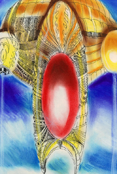 Even the smiling face painting on the noseconse didn't ease his stress. As he opened the hatch, the traveller gazed upon the Stone Iris. An edifice which on earth would have been impossible to construct. In this bizarre gravity it was okay to build extreme arches and gravity defying towers in an atmosphere which made one feel like one feel like the first stages of being in love. Murphy caught sight of himself in the scarlet spacesuit and thought he looked pretty good. Felt his ego boosted as he fixed up his harnesses and scanned the building with his handy dandy device which blinked on and off like a Christmas tree decoration. He tested his weight on the harness and then descended into the temple of the Iris on the bungee cord.