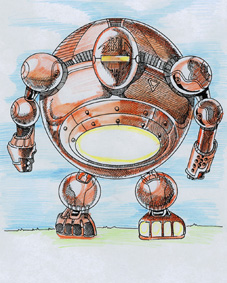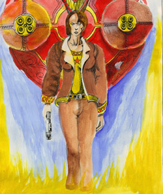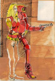 One lunged at Grace 13 but she managed to squeeze a shot into its chest. The mirco-charge burrowed into the breast plate and found a home in the iron sternum before the core melted. It was ten feet from her when the thing blew. She covered her eyes and choked back the tears. Emotion washed over her such was their way. The red robots had a sorrow program which emitted after their deaths. They instilled remorse in the souls of their destroyers. She reloaded the old pistol as the other two came for her. Thirteen just saw two silhouettes through her tears. Arms shaking now as they swooped in for the kill, yellow eyes listening sickly, pink beaks tapping against their breast plates. She sobbed dropping a charge in the sand. Sorrow washing over her now. Grace13 dropped and scuffed her knees. "Goodbye little girl." The leader said. She remembered it all now, like a bad dream. It had no arms, just sockets and ball joints swivelling in the shoulder units. The charge slid into the gun chamber, 13 wiped tears from her eyes and fired. It sailed through the air and... Missed. Blue sky received the deadly gift and it imploded, a firecracker in the air. Robot stopped a mere three feet from 13 and she looked up through the strands of her golden hair. Grace13 couldn't cry now, the tears were locked deep within her but her heart felt like it would implode as she looked into the droid's photoreceptors and inside she saw herself. Saw her own face looking back, eyes moist with what could be and what should be. Unfairness she saw in her face. Her contorted face. Shaking hands dropped the pistol in the sand and the storm which blew from the droid's VTOL engine buried it in a little pit. She felt around for it like a kid at school playing in the sand pit, alone wishing that friends would come for her and take her away from all this solitude. But they never did so she would walk around the playground alone, sulking. Standing out from the crowd and suffering for her loneliness. She saw all this in the droid's eyes and still it hovered there waiting until she reached the point of despair. Then it would give her the option. Grace 13 reached out and touched the smooth red skin of the metal beast. It held no heat for her. There were little pit marks in its chrome surface where biting winds had eroded the paint work. She tried to block the hypnotic stare of the eyes which even now were changing to a sickly green hue. It reminded her of Kim Novak emerging from the bathroom in Vertigo and James Stewart's face as he finally accepted the ghost of his past. Just as she now was accepting the ghost that came for her soul.