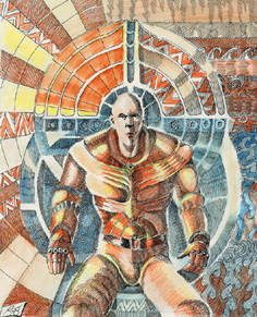 Even when he examined the strange markings on the wall, felt like he could take on the whole world in an arm-wrestling competition. The astronaut felt better than he had in years and minutes after entering the temple, he was feeling so elated, he didn't notice the door to the room close behind him. The chair which dominated the centre of the chamber looked so comfortable and the sudden weight of Murphy's suit became unbearable so he decided the only option was for him to take some weight off. His scanner gave him a green light for 'breathable atmosphere' and he removed the bulky spacesuit. There were many things in the room but he only saw one thing. The chair. He tried to resist but he started walking toward it.