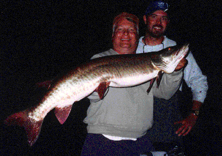Trophy Hunting Outings are for the experienced and seasoned muskie fisherman. This type of fishing is challenging, often boring, and in most cases there will be little if any action. The odds are strong that you will see no muskies all day. The odds are stronger that you will not catch a muskie all day. Although the action can be brain-deadening slow, if a muskie is caught, it will usually be a large one. The seasoned trophy fisherman realizes this and is going for quality, not quantity. This type of fisherman has much experience in fighting and landing muskies, fishing waters others ignore, and using techniques that may be different from the run-of-the-mill. He (or she) will not crack under the long hours of inactivity because of the knowledge that the potential for a really large muskie is there. Trophy Hunting Outings are not for the inexperienced or faint-hearted. Fat Fish Guide Service is willing to take novice trophy hunters (not novice muskie fishermen) on this type of outing. It is the only way a serious trophy hunter will learn the professional ropes. However, we prefer to take only well-experienced muskie fisherman on these. This does not mean we do not work hard to have a beginner or novice bring in a large muskie. It brings us great pleasure when it happens! The steady grind of long, boring hours, using unfamiliar techniques, and inexperience with fighting a very large muskie usually brings frustration and heartaches for the novice. If you are a novice or intermediate, be on the water as much as possible, gain as much experience as you can, learn all you can, then brace yourself for some real time on the water.