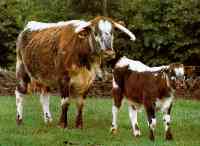 had become famous. Sadly they could not compete with the specialist dairy breeds for gross milk production, and they were gradually replaced by Longhorns, Shorthorns and finally the black and white Holstien Friesians. By 1975 only one herd remained belonging to the Dowdeswell sisters at Wick Court near Gloucester. The Bemborough herd was established in 1969 direct from Wick Court and has produced a number of key bulls for use in the artificial insemination programme, and many champions. Nationally, numbers are increasing with the support of an active breed society which has been run from the Cotswold Farm Park Office since 1981. |