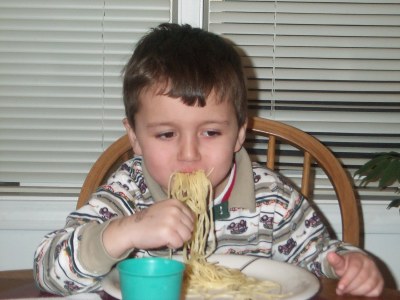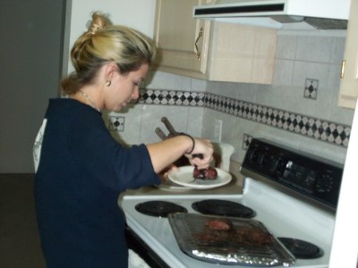I'm cooking with oil and it's going to stink up Dad's kitchen.