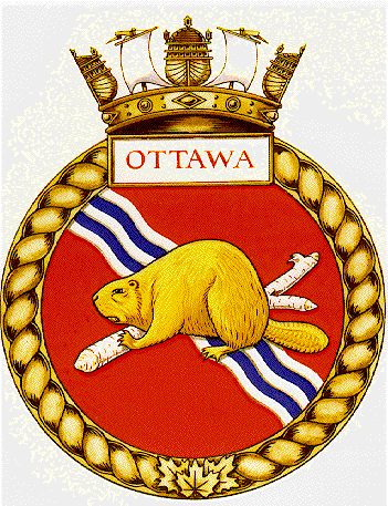 Blazon: Gules, a bend wavy argent charged with two cotises wavy azure, over all a beaver or, the sinister forepaw resting on a log of silver birch proper.