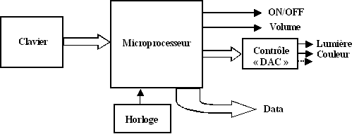 Le microprocesseur est utilisé comme interface entre les touches de fonction et les dispositifs contrôlés. Sur la base d’un programme conservé en mémoire morte, le microprocesseur surveille les touches de fonction et exécute les opérations successives de programmation lorsqu’une touche est enfoncée. Le fonctionnement du circuit contrôlé se fait soit :