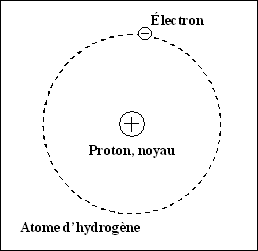 L’atome d’hydrogène se compose de deux particules, le proton et l’électron. Le proton, particule de charge positive, constitue le noyau de l’atome et l’électron décrit une orbite autour de ce dernier.