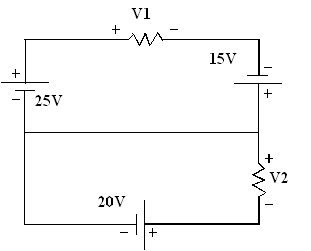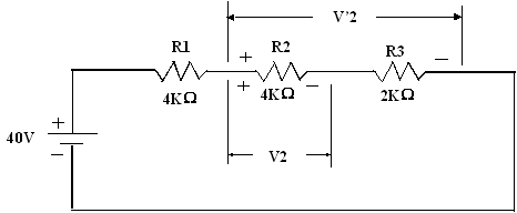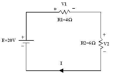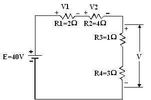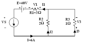 VS - E + V1 + V3 = 0 è VS = E - V1 - V3 = 40 - 18 - 4 = 18 volts