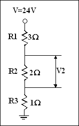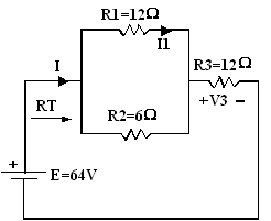 E / RT = V3 / R3 è V3 = (R3 / RT) x E = (12 / 16) x 64 = 48 V