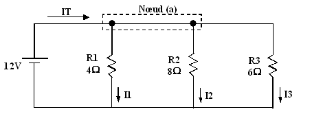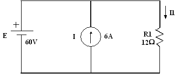 Exemple 1 : déterminer le courant I1 dans le circuit ci-dessous.