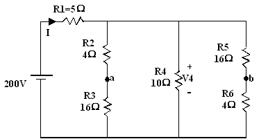 Va = (R3 / R2 +R3) x V4 = (16 / 4 + 16) x 100 = 80 volts