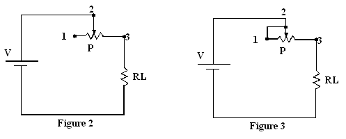 Le montage en rhéostat fait véritablement appel à la notion de "résistance variable". Les figures 2 et 3 présentent deux façons de brancher la résistance variable en rhéostat ; la méthode illustrée à la figure 3 est préférable car elle évite de laisser flottante une des broches du potentiomètre.