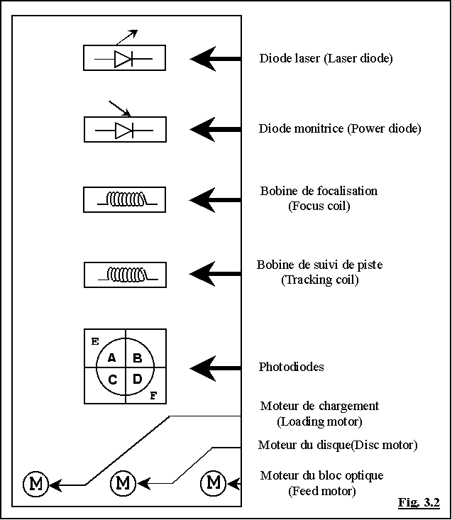 Les photodiodes sont d'une extrême importance car non seulement elles fournissent le signal R.F. aux amplificateurs R.F. et les données pour le « focus error », mais elles fournissent aussi le signal pour le « tracking error » (photodiodes E et F). Le tracking est très important car c'est lui qui ordonne au rayon laser de pointer à la bonne place sur le disque pour que la lecture se fasse normalement.