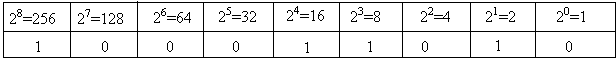1000110102 = 256 + 16 + 8 + 2 + = 28210