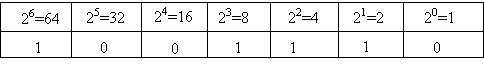7810 = 64 x 1 + 32 x 0 + 16 x 0 +8 x 1 + 4 x 1 + 2 x 1 +1 x 0 = 10011102
