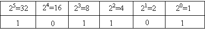 4510 = 32 x 1 + 16 x 0 +8 x 1 + 4 x 1 + 2 x 0 +1 x 1 = 1011012