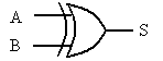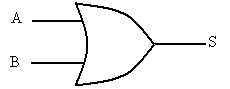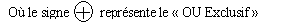Une porte « OU Exclusif » n’a que deux entrées (il n’existe pas de « OU Exclusif » à 3 ou 4 entrées). Ces deux entrées sont combinées pour donner :