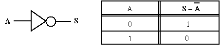 L’opération « NON », contrairement aux opérations « OU » et « ET » ne concerne qu’une seule variable d’entrée. Si une variable A est soumise à une opération « NON », le résultat S est donné par l’expression :