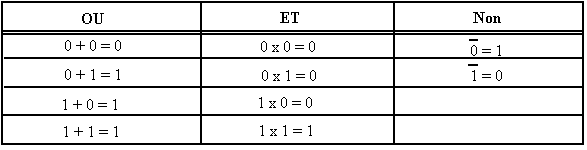 Dans l’opération « ET » la réponse est 1 si et seulement si toutes les entrées sont à 1 et elle est 0 dans tous les autres cas.