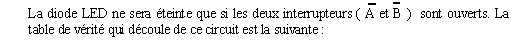 Ce fonctionnement est illustré par la table suivante que l’on appelle table de vérité :