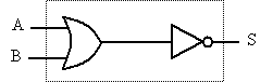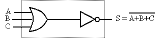 Ce circuit est habituellement représenté par le symbole suivant où le petit rond à la sortie de la porte « OU » signifie « inversion ».