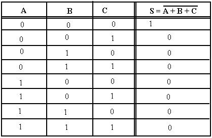 Ce fonctionnement est illustré par la table de vérité suivante :