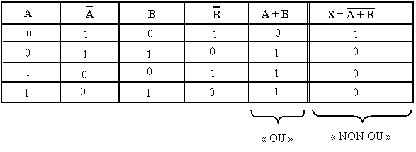 L’opération « NON-OU » est une combinaison des opérations élémentaires « OU » et « NON »