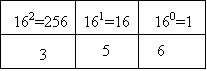 35616 = 3 x 256 + 5 x 16 + 6 x 1 = 768 + 80 + 6 = 85410