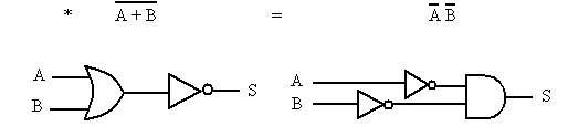 Théorème 16 : la somme logique complémentée de deux variables est égale au produit logique des compléments de ces deux variables.