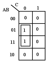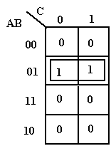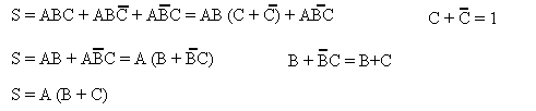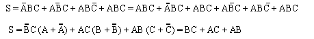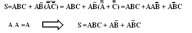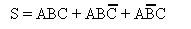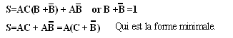 Pour ce regroupement, les variables qui sont semblables (normales ou complémentées) forment l’équation de la sortie soit :